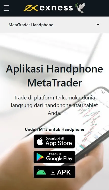 - Unduh MT Mobile: Untuk mengakses aplikasi MetaTrader Mobile, kunjungi situs web resmi Exness dan arahkan ke bagian unduhan. Dari sana, Anda dapat menemukan tautan untuk mengunduh aplikasi untuk perangkat khusus Anda, baik itu perangkat Android atau iOS.